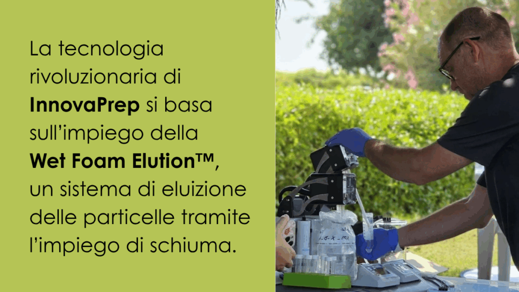 La tecnologia rivoluzionaria di InnovaPrep si basa sull’impiego della Wet Foam Elution™ (WFE), un sistema di eluizione delle particelle tramite l’impiego di schiuma, inizialmente progettato per sistemi di biodifesa e rilevamento di alto livello.